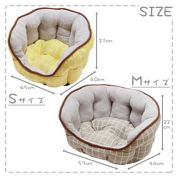 ■サイズ 本体:約 幅57.0×奥行44.0×高さ22.0cm ■適応種:超小型犬〜小型犬・全猫種 ■材質 表地:ポリエステル・コットン・レーヨン・毛 内生地:ポリエステル 中綿:ポリエステル 底面:ポリエステル・塩化ビニル樹脂 ■製造国:中華人民共和国 ●ご注意事項● ・洗濯する場合は、品質表示マークに従ってください。