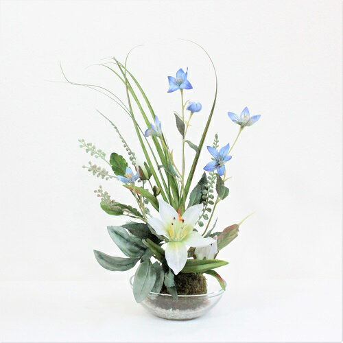 テッセンの苔玉アレンジ ガラスの器が涼しげ ホワイト クオリティが高く本物と見間違うかも。