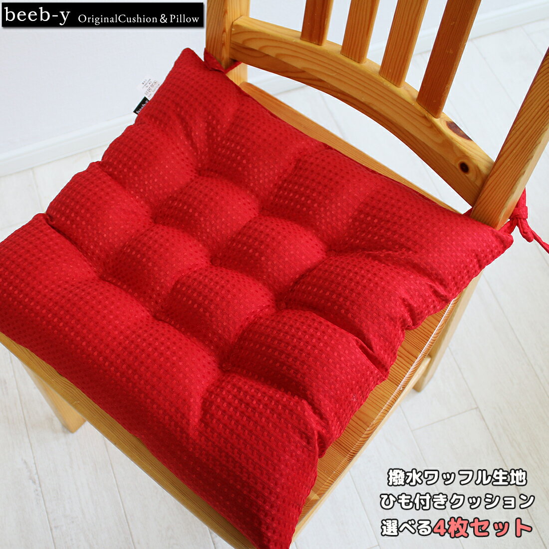 4枚セットひも付き シートクッション 撥水ワッフル生地 クッション 東レFT綿使用 シンプル 送料無料 佐川またはヤマト便