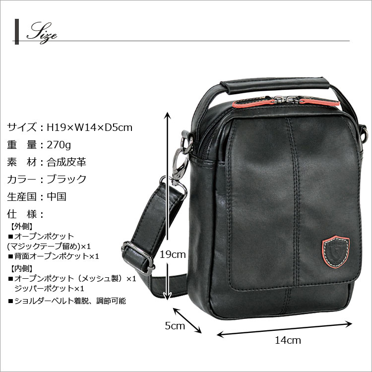 ちょっとしたプレゼントにも最適! ・商品スペック サイズ (約)W14×H19×D5cm 重量 (約)270g 素材 合成皮革(PVC) 仕様 【外側】 ■オープンポケット(フラップ付き、マジックテープ留め)×1 ■オープンポケット内装に、携帯電話ポケット×1、オープンポケット×1 ■後面オープンポケット(マジックテープ留め)×1 【本体内側】 ■オープンポケット(メッシュ製)×1 ■ジッパーポケット×1 ・ご注意事項 ※お取り寄せ品のためご注文確定後のキャンセルや商品の返品/交換はお断りをさせて頂いております(初期不良品を除く)。