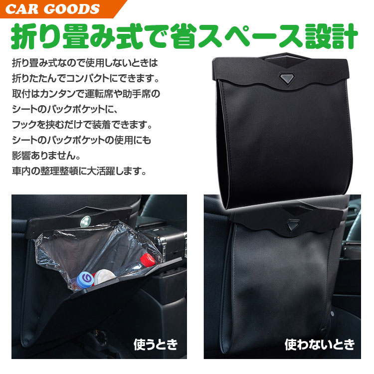 ゴミ箱として ビニール袋を取り付けることにより、車内用ゴミ箱として使えます。